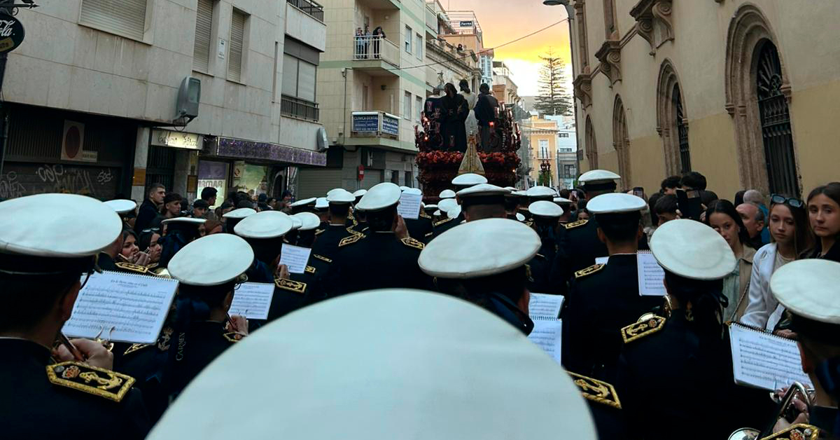 Desglose del repertorio musical interpretado tras el paso de misterio de la Santa Cena por la Banda de Cornetas y Tambores Nuestra Señora del Carmen de Almería en el Domingo de Ramos de 2026.